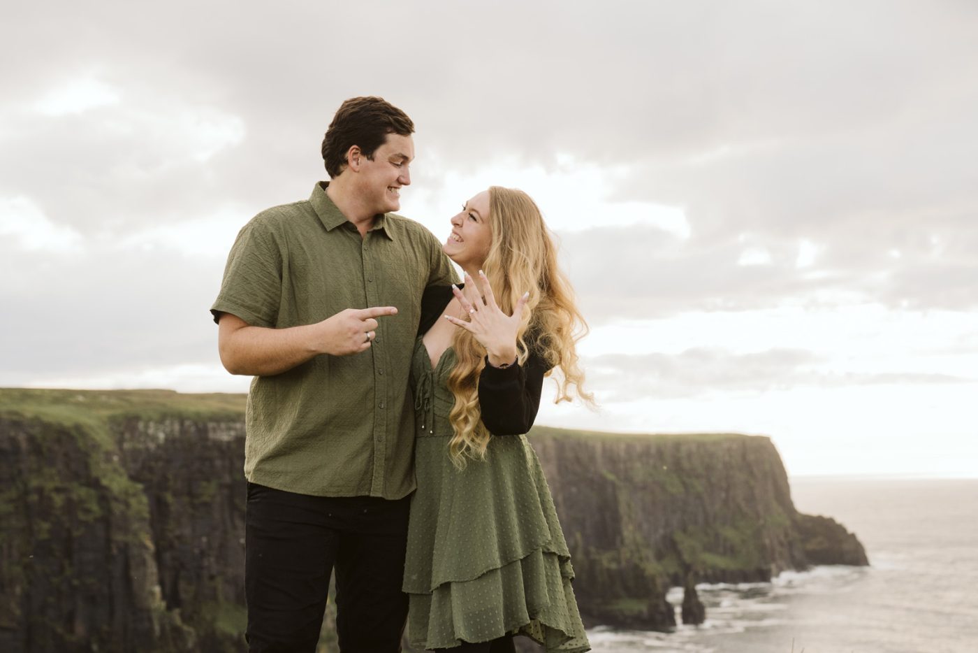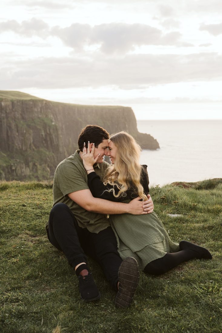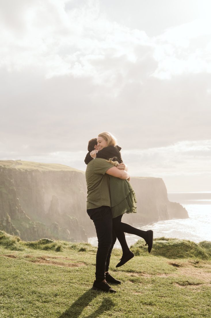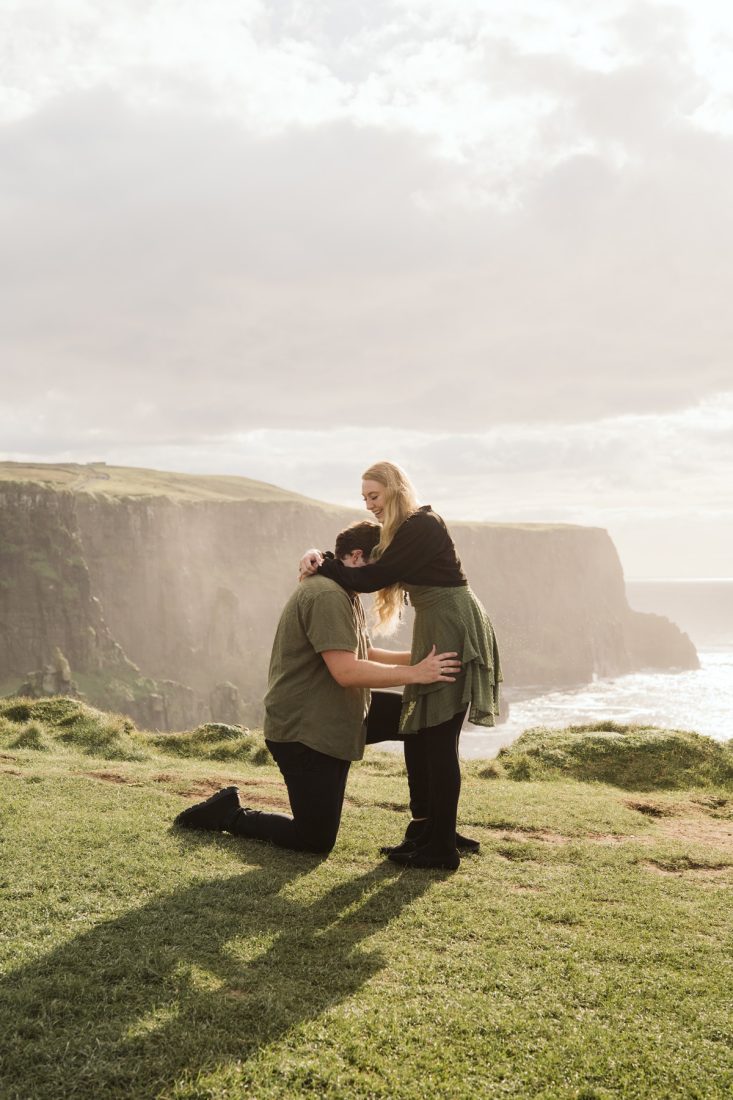 When we arrived at the viewpoint, the light hitting the Cliffs was stunning. As we were about to start our photoshoot, Hunter got down on one knee and surprised Sarah with his proposal – her reaction says it all!