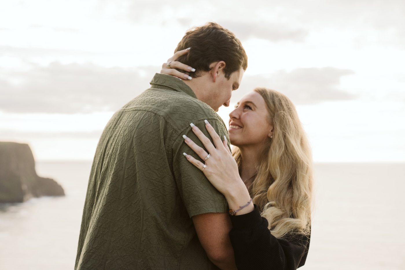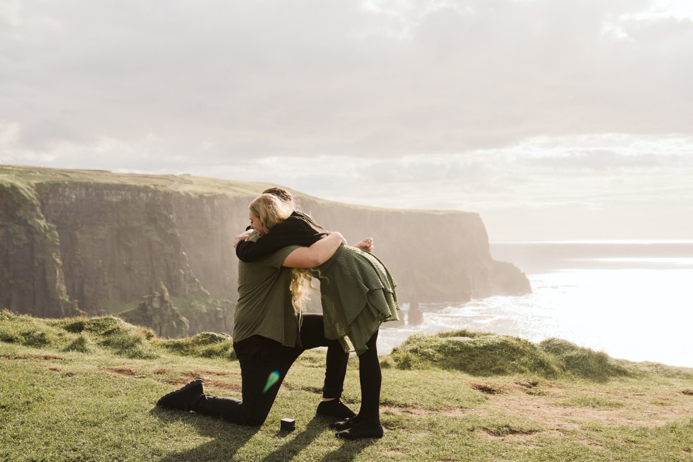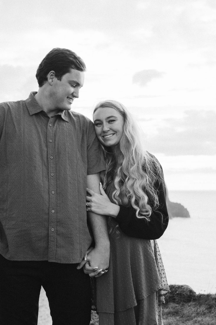 When we arrived at the viewpoint, the light hitting the Cliffs was stunning. As we were about to start our photoshoot, Hunter got down on one knee and surprised Sarah with his proposal – her reaction says it all!