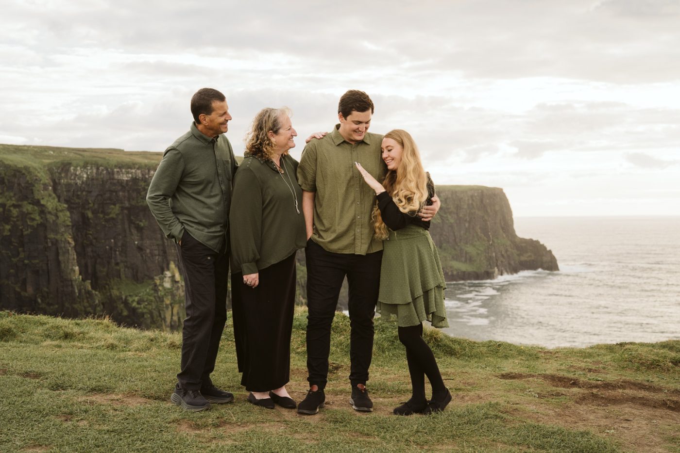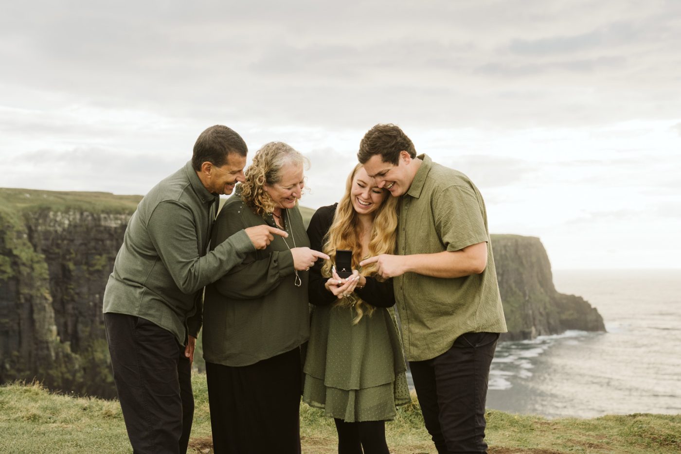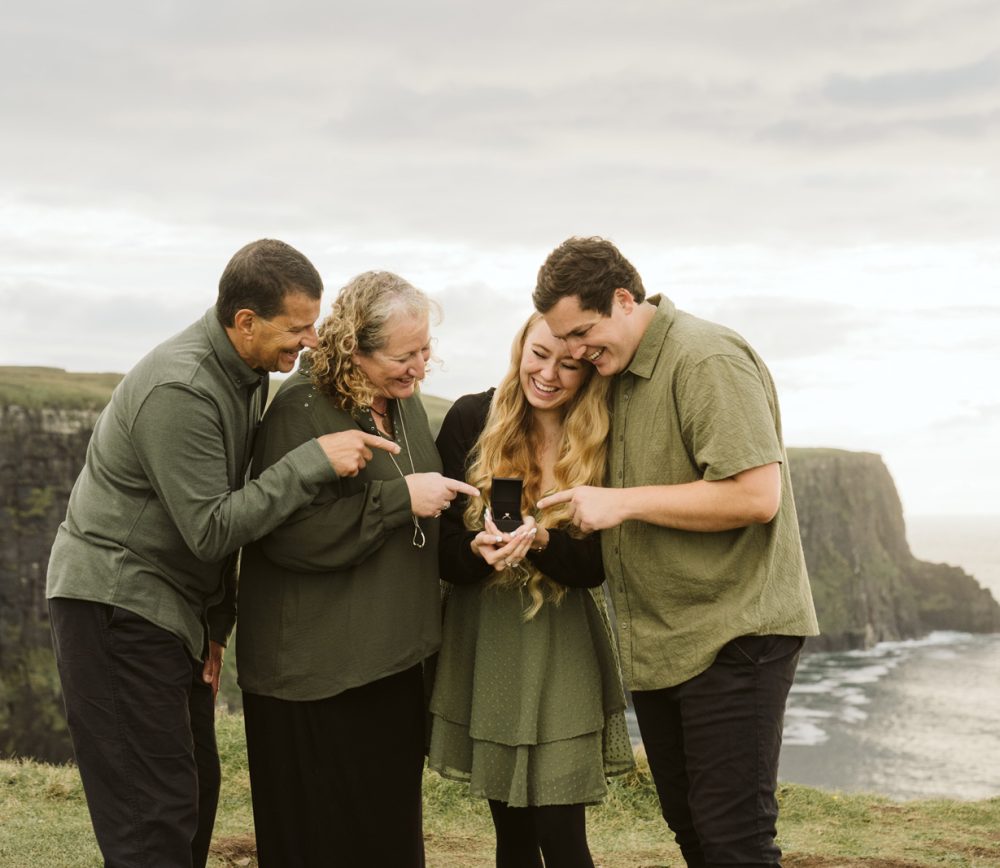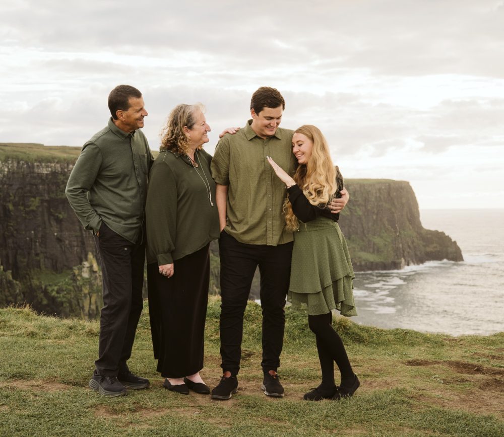 What started out as a family photoshoot, ended up in a surprise proposal at the Cliffs of Moher! Josh’s mum had got in touch with me about booking a family photoshoot as a cover for Josh proposing to his high school sweetheart. On the walk to the viewpoint, it was lovely to get to know them all and Savannah didn’t suspect that anything was happening other than the photoshoot.