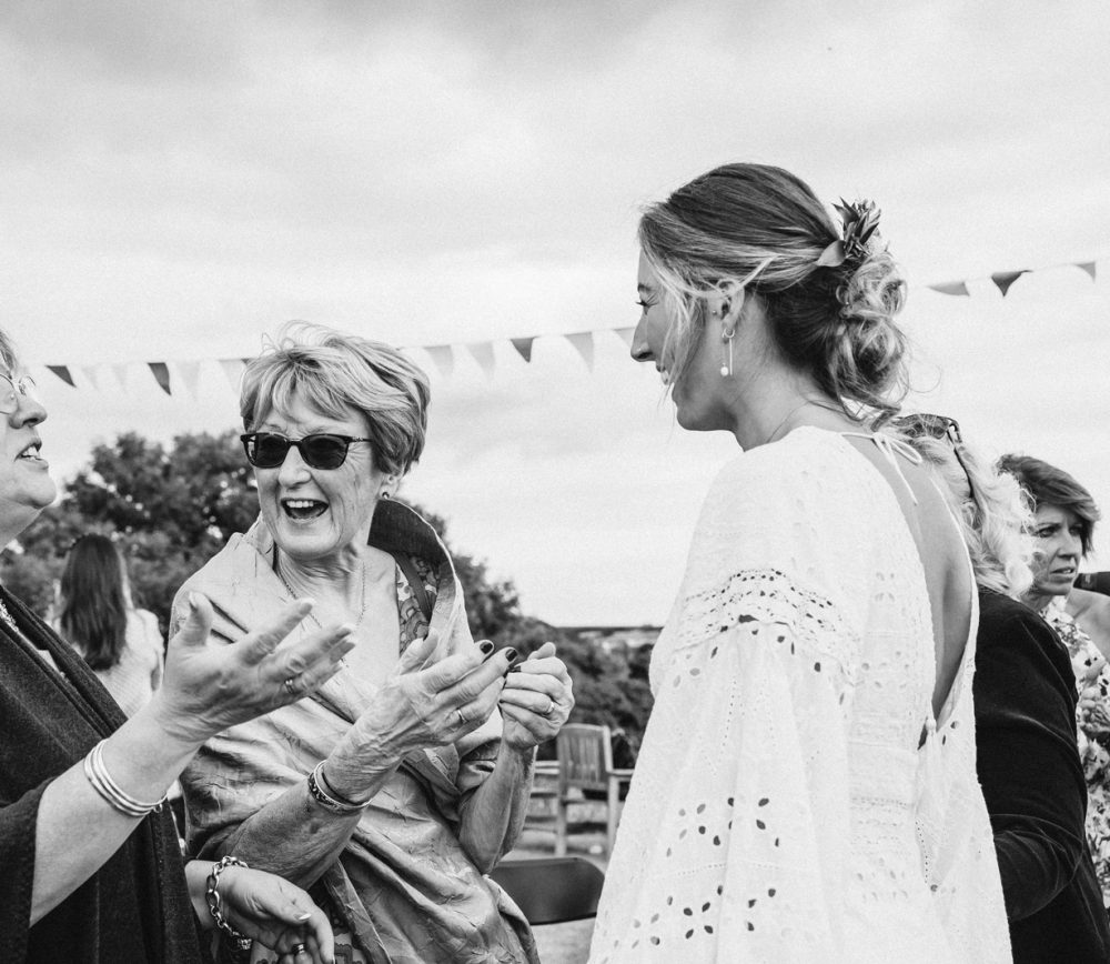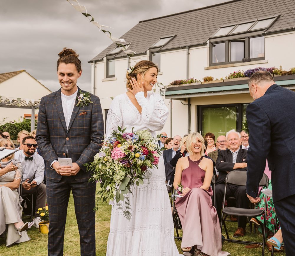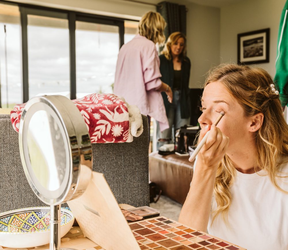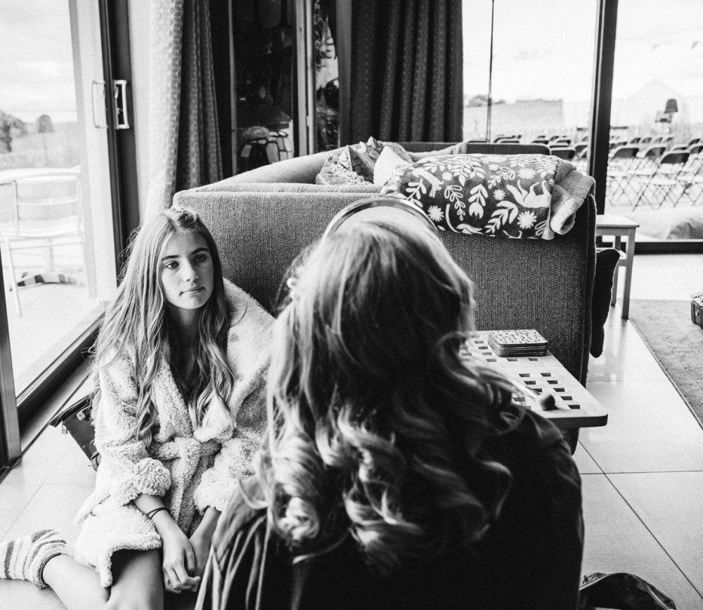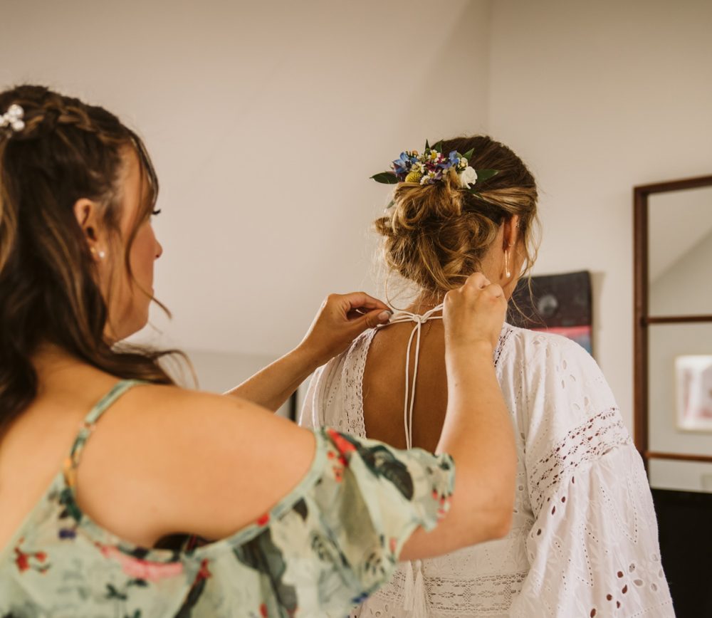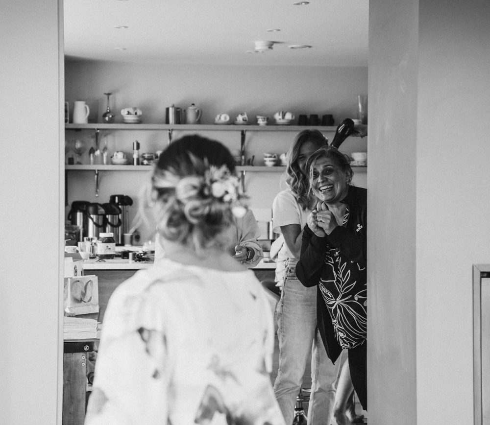 Back at Erin’s house, guests had started to arrive and it was time to get dressed. It’s one of my favourite parts of the day as it’s usually the time when everything starts to feel real and you realise you’re getting married today. None of her bridesmaids had seen her full look, so we decided to get a first look with them. I love their reactions upon seeing her – it’s so lovely to have this space with your girls.