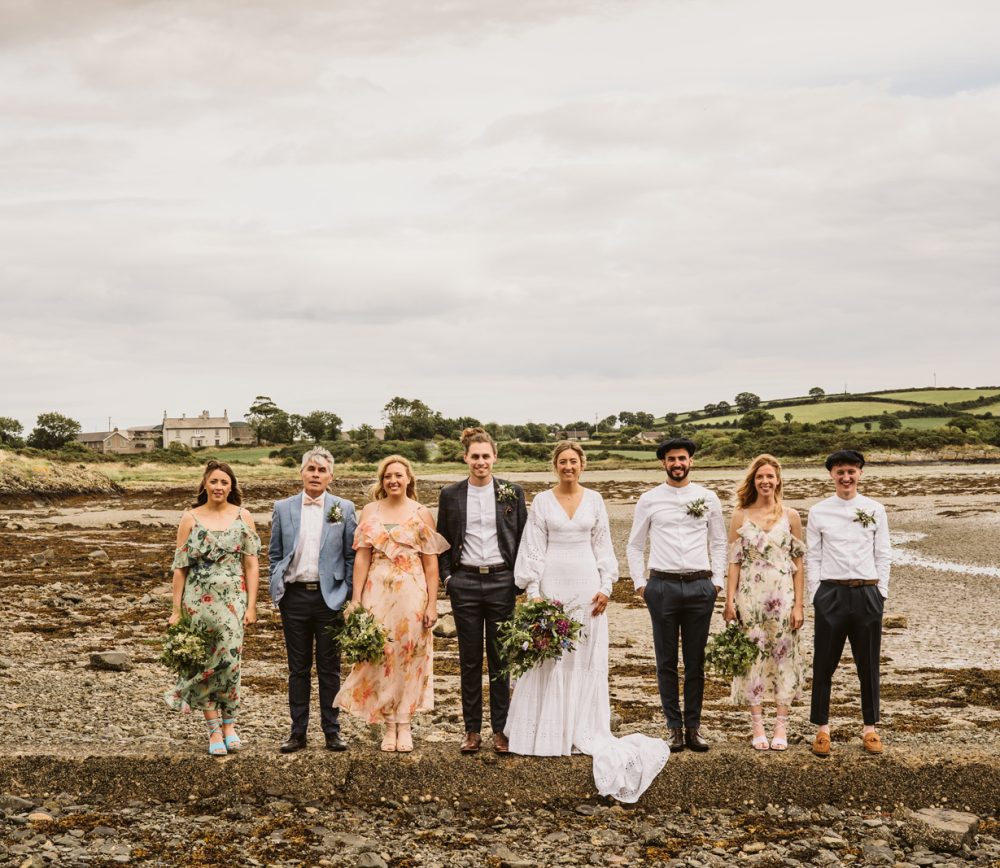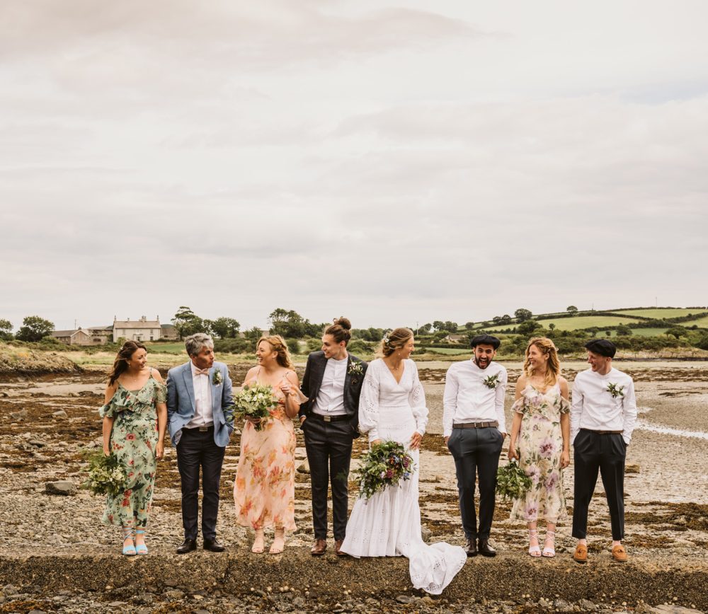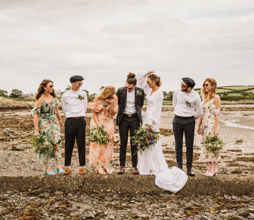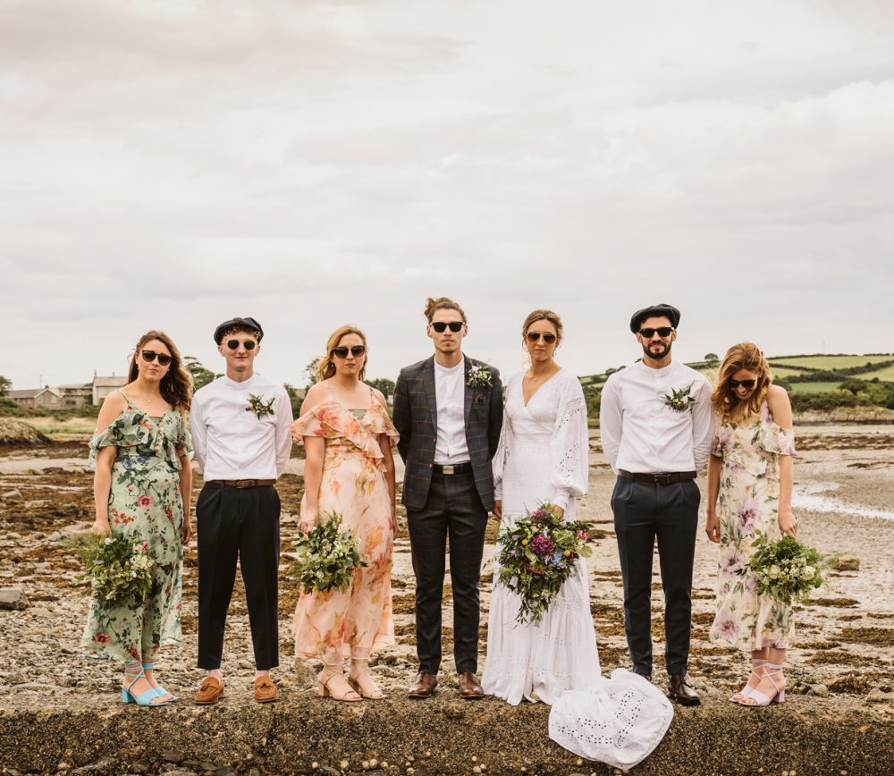 After the ceremony was over, we got our formal family photos while the guests enjoyed some homemade lemonade and lawn games (which provided some beautiful candid moments). The bridal party headed down to the lough and got some beautiful photos while the tide was out. These photos should be fun – you’re spending time with your best friends and boy did we have fun! I even told them to get their sunglasses on and give me their best poker face and they still couldn’t hold it together.