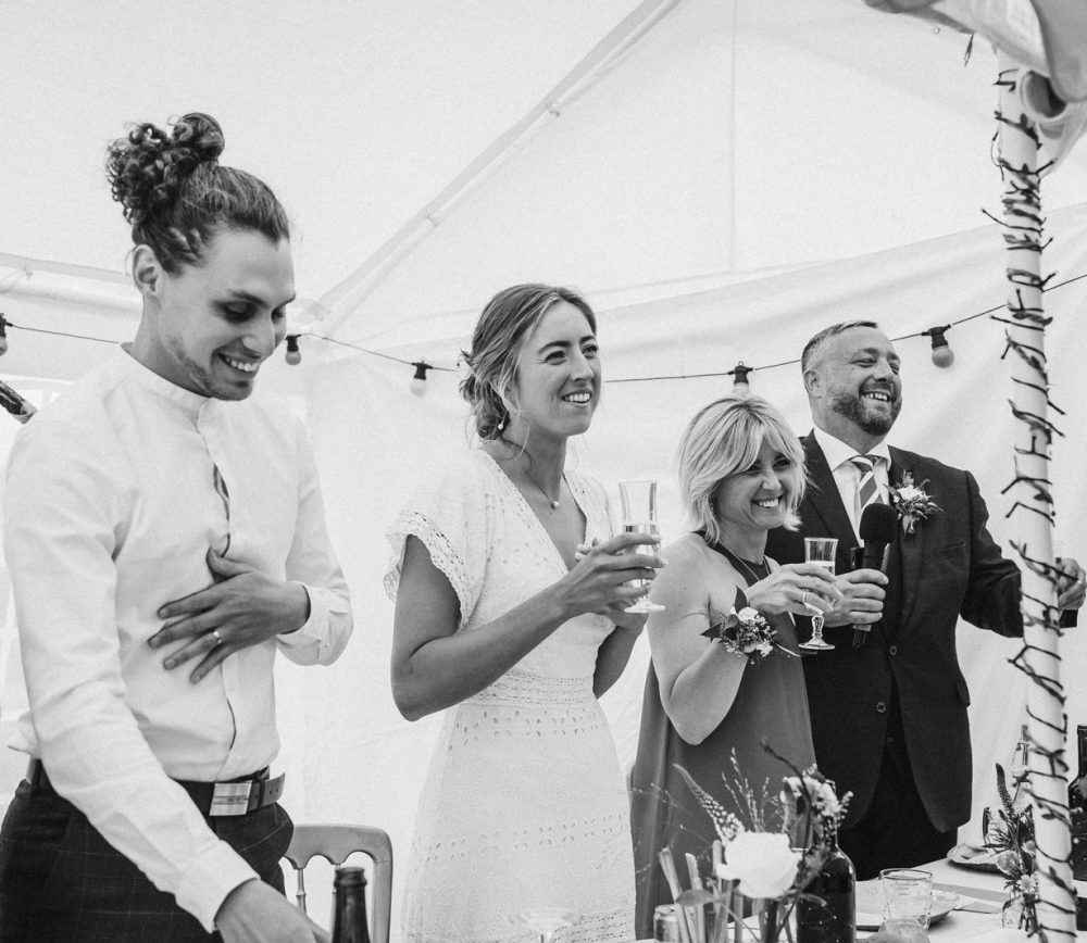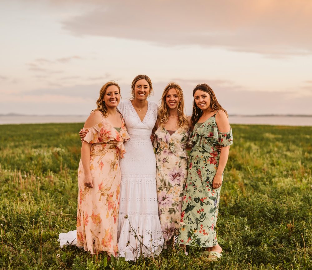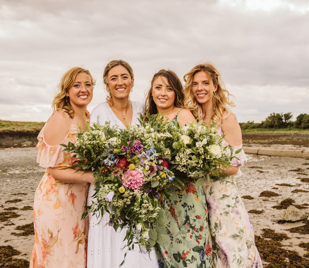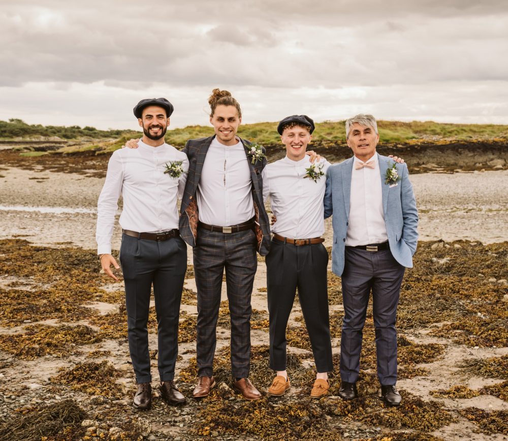 After the ceremony was over, we got our formal family photos while the guests enjoyed some homemade lemonade and lawn games (which provided some beautiful candid moments). The bridal party headed down to the lough and got some beautiful photos while the tide was out. These photos should be fun – you’re spending time with your best friends and boy did we have fun! I even told them to get their sunglasses on and give me their best poker face and they still couldn’t hold it together.
