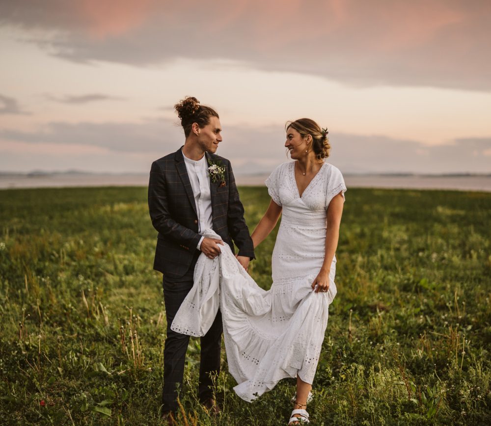 Before the party started in earnest, I nabbed the bridal party for some golden hour shots before getting some portraits with Erin and Miqui. It’s always worth taking 10-15 minutes in the evening to get some portraits as you’ll be much more relaxed with most of the formal parts of the day already completed. The light, coupled with the colours in the sky, was beautiful and these turned out to be my favourite shots of the day.