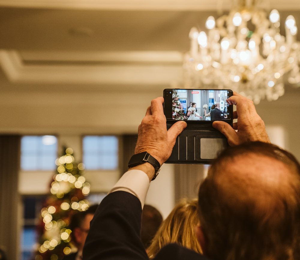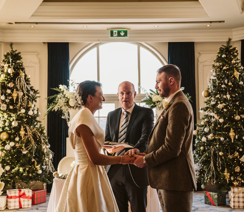 Natalie and Graham got married in December and it was on one of the coldest days of the year – even the lake at the resort was frozen solid which was absolutely beautiful! Due to the time of year, an outdoor ceremony wasn’t feasible but the ballroom was decorated with two beautiful Christmas trees which made the space even more magical.
