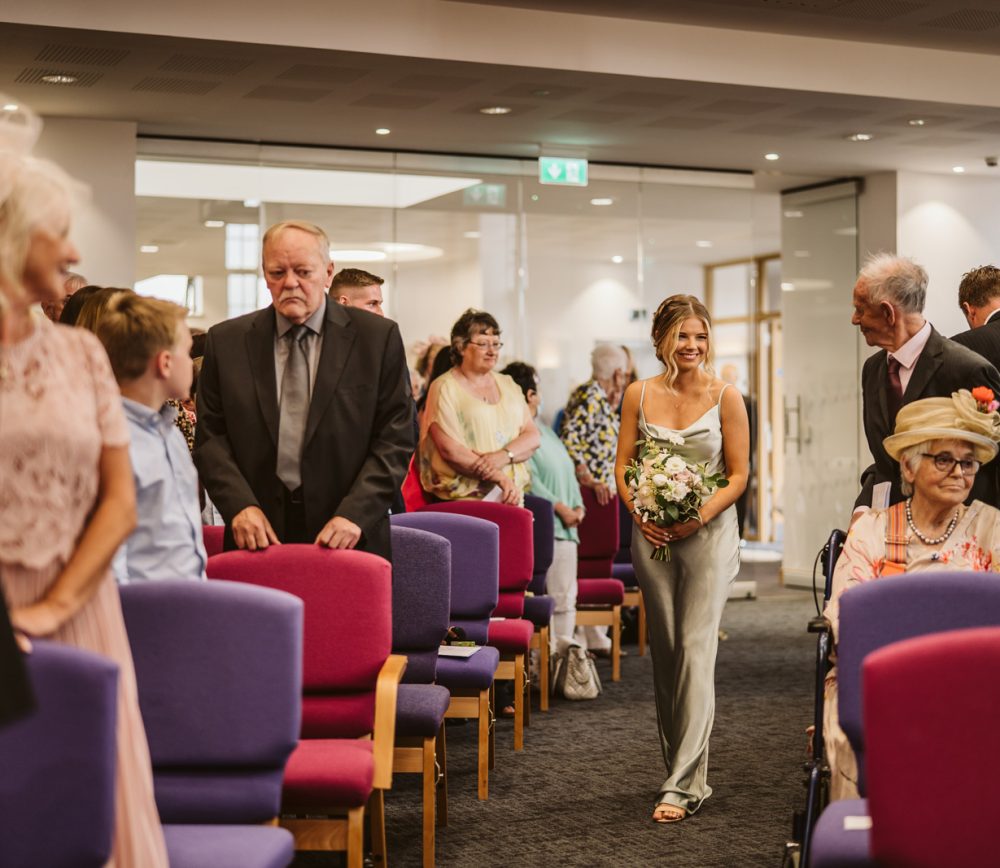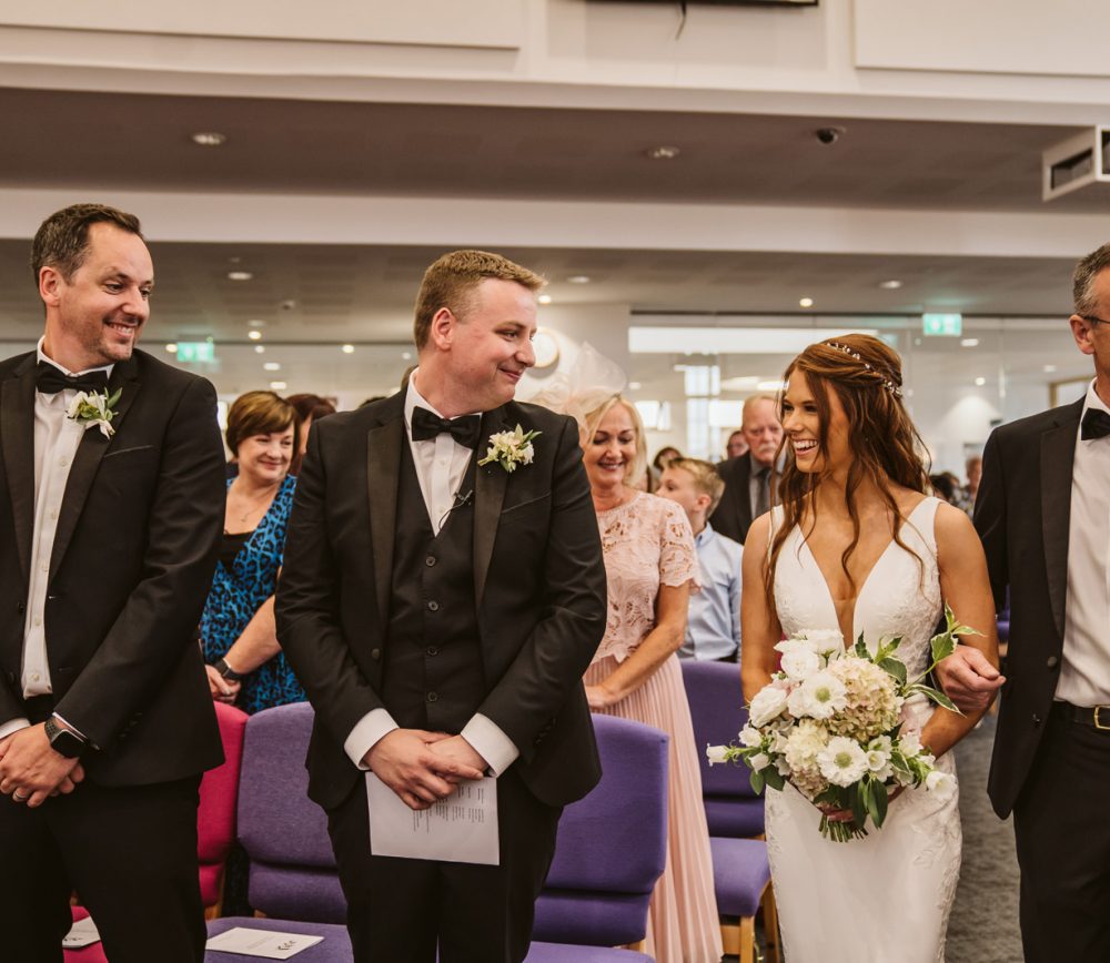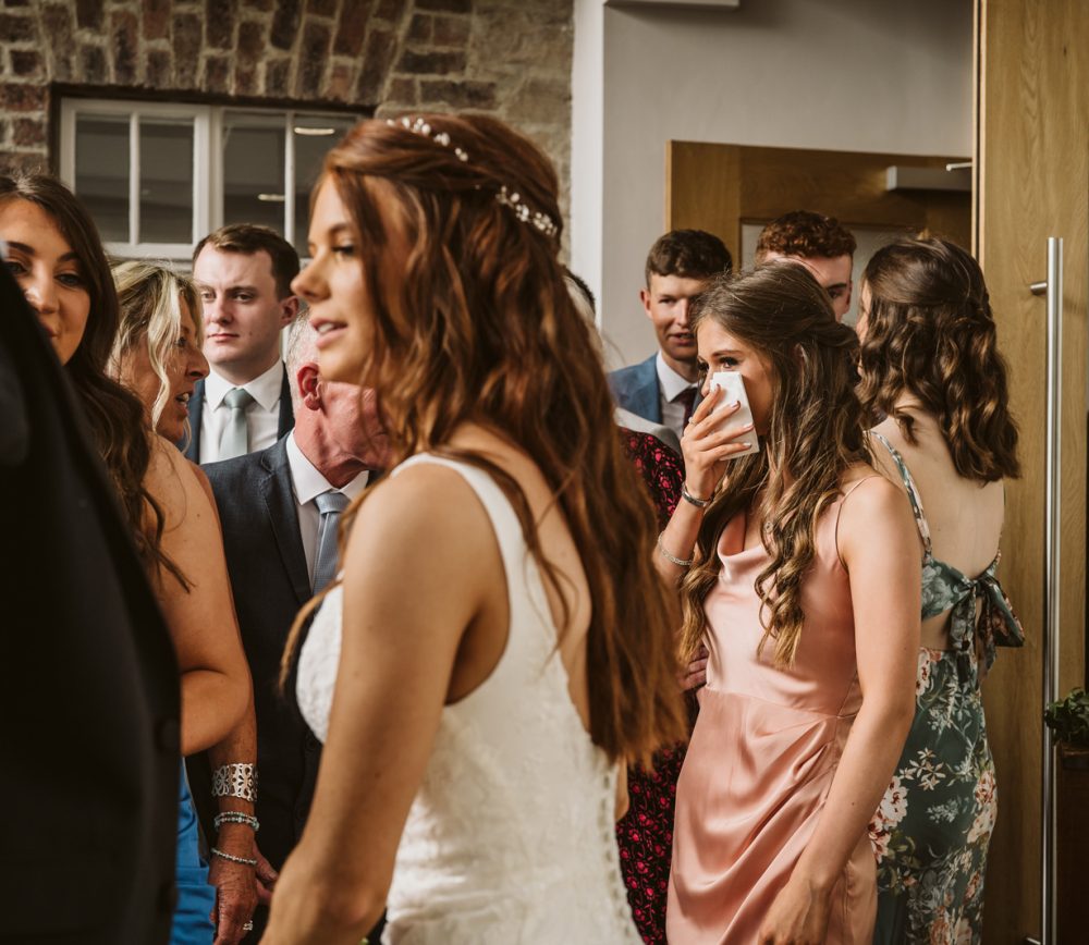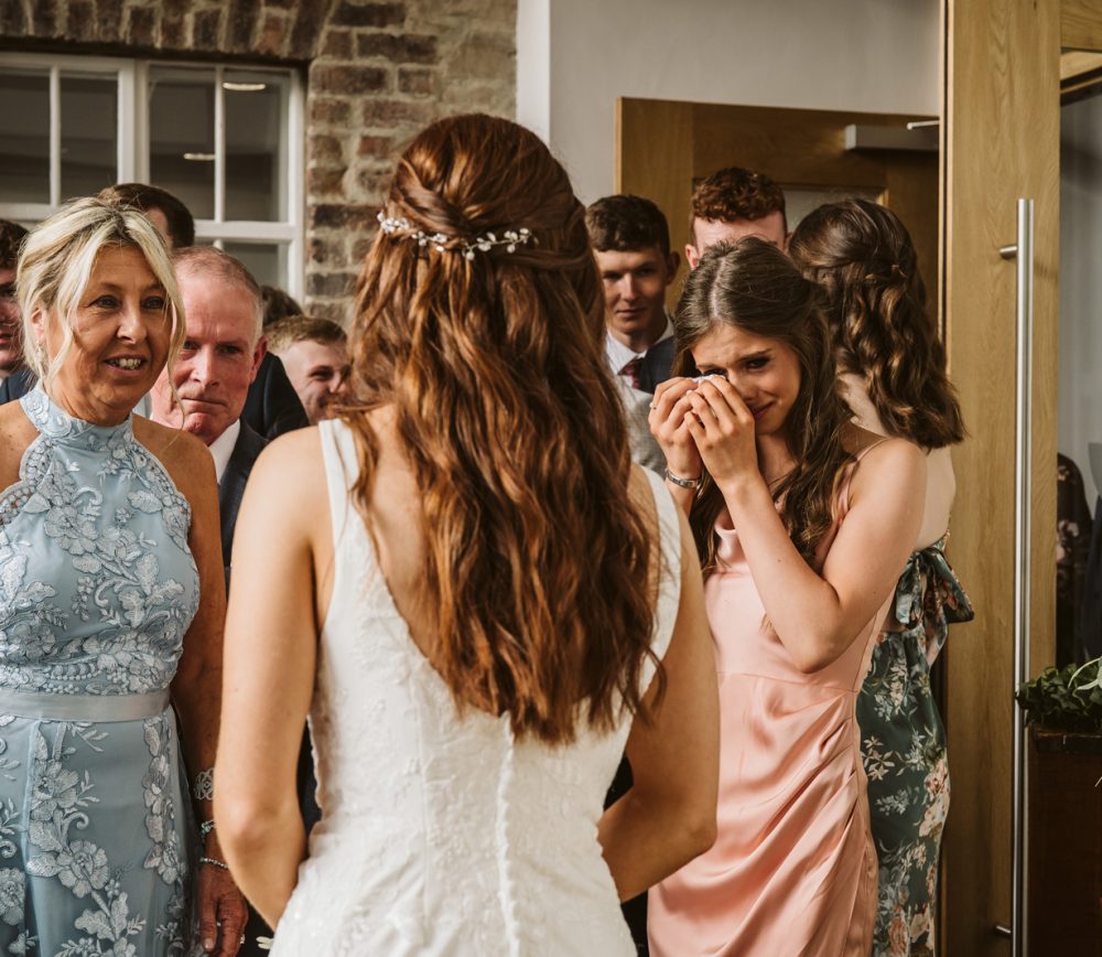 After this, the girls got into their bridesmaids dresses before Sarah, the maid of honour, helped Naomi into her wedding dress. The moment you get into your wedding dress is when the reality hits that you’re just a few minutes away from getting married. It’s a really special moment – make sure someone important is the one helping you. These photos are some of the most meaningful from your wedding morning.