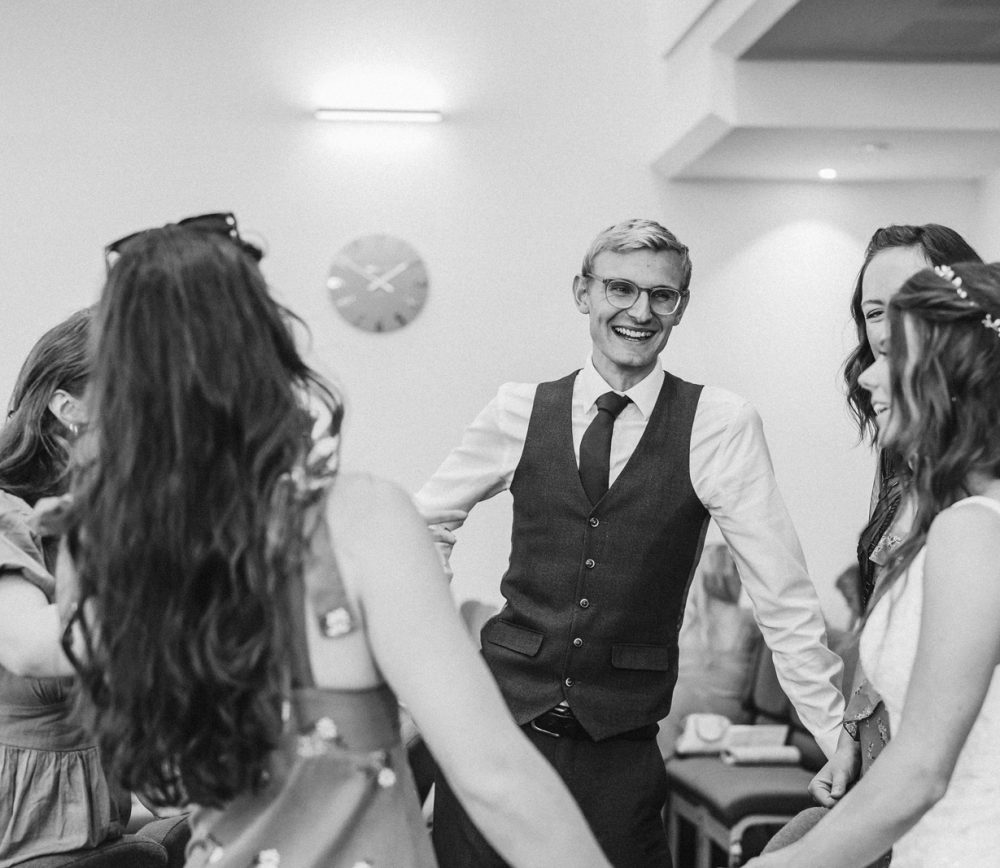 They were getting married in Dundonald Presbyterian where Naomi’s dad is the minister. Naomi and her bridesmaids were getting ready in the manse, which is a stone’s throw away from the church. Often times, the closer you are to the ceremony, the more likely that you’ll be late but there was no reason that Naomi should be late!