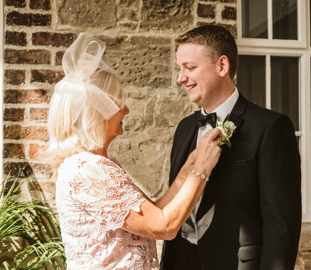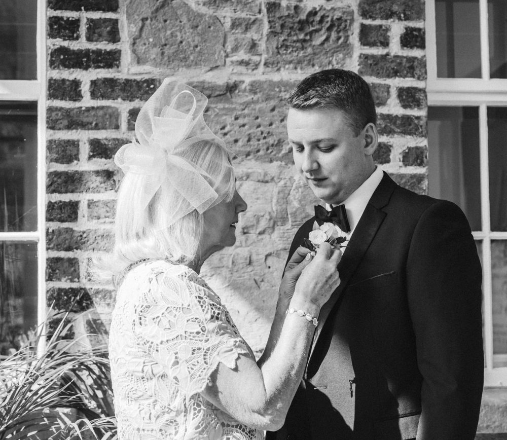 While the tradition always goes that the bride should be late arriving at the church, it was actually Philip who was late to get to the church. Just before Naomi got into her dress, I got some photos of Philip and his groomsmen in the church. One of my favourite photos is Philip’s mum putting his buttonhole on – what a special moment!