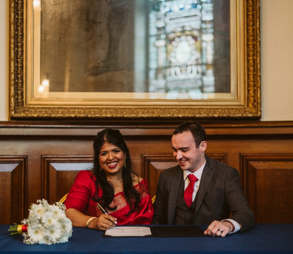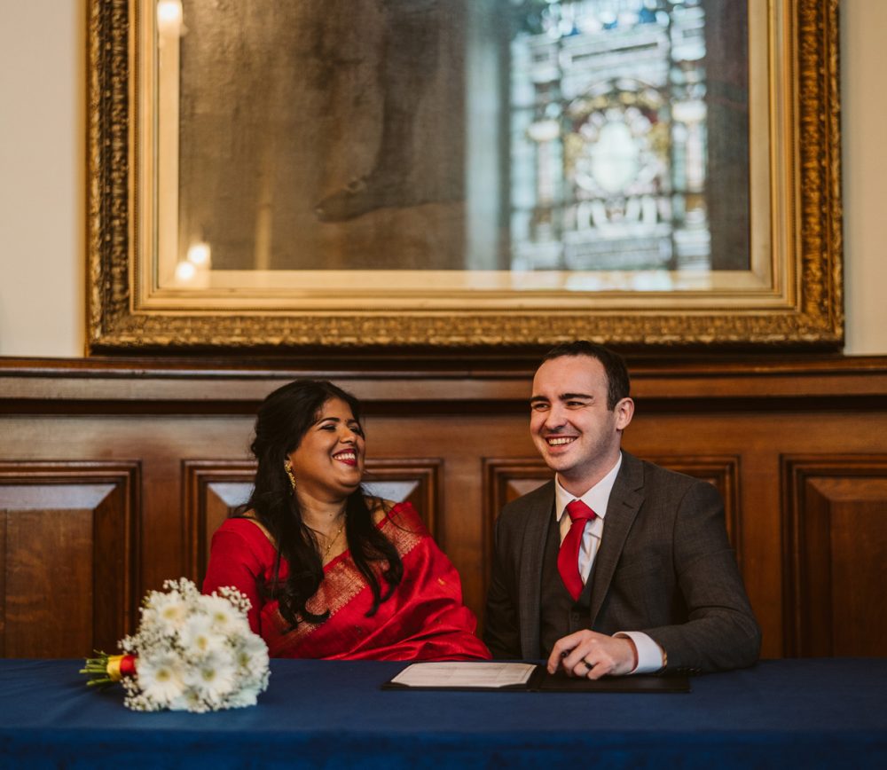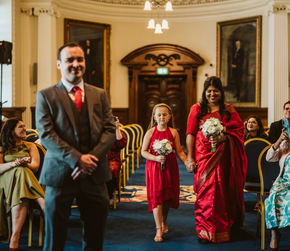 Steve and Sony opted for a Belfast City Hall civil ceremony. They arrived together and got some portraits beforehand while waiting on one of their guests to arrive. Sony walked down the aisle with their flower girl, who was in a matching outfit. They exchanged vows and they honestly couldn’t look any happier.