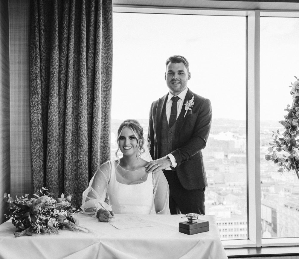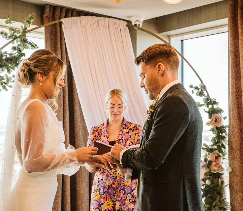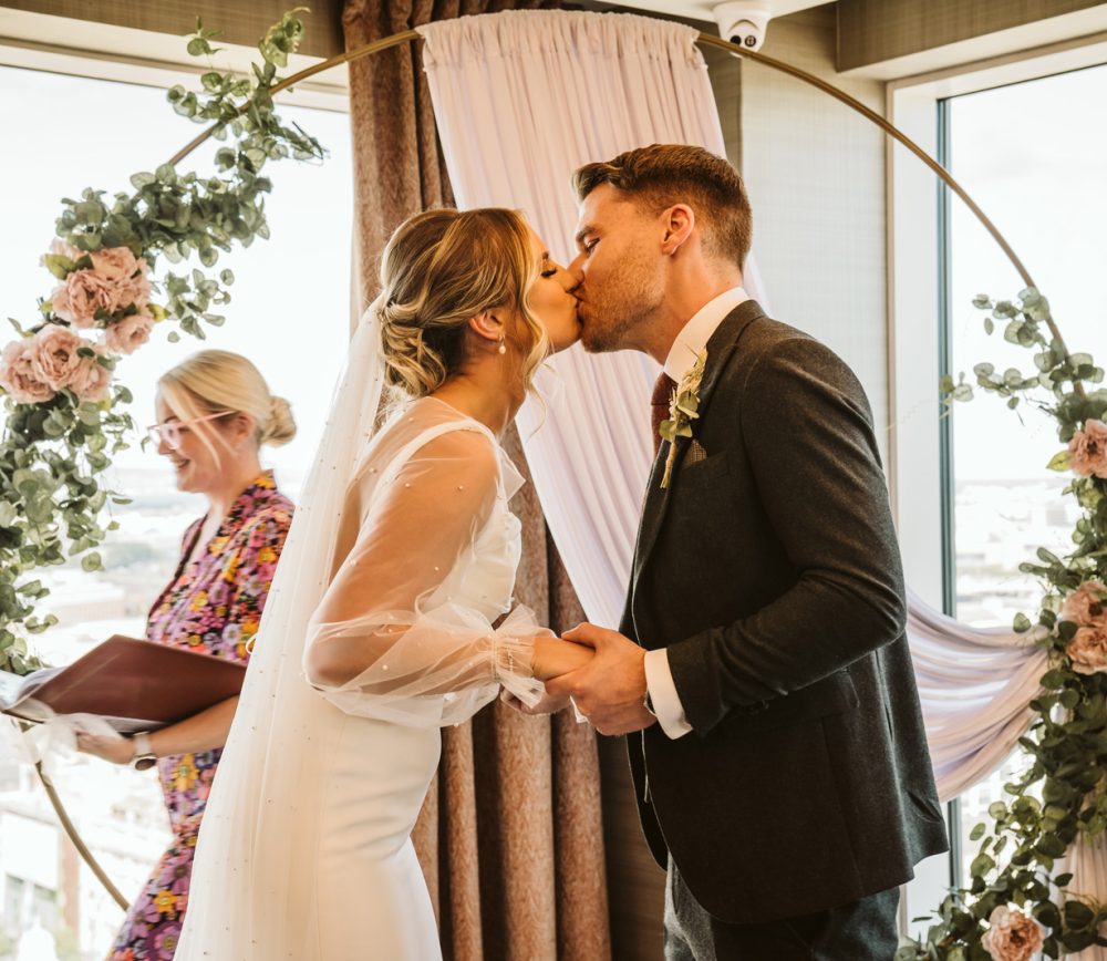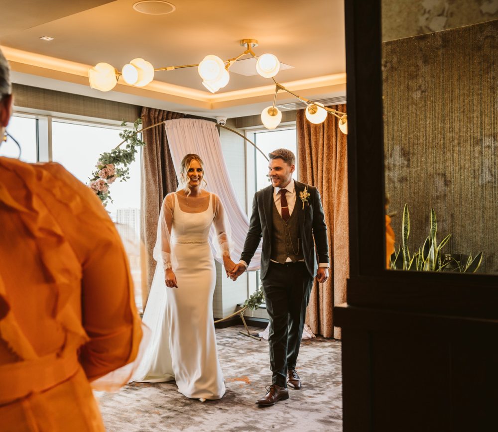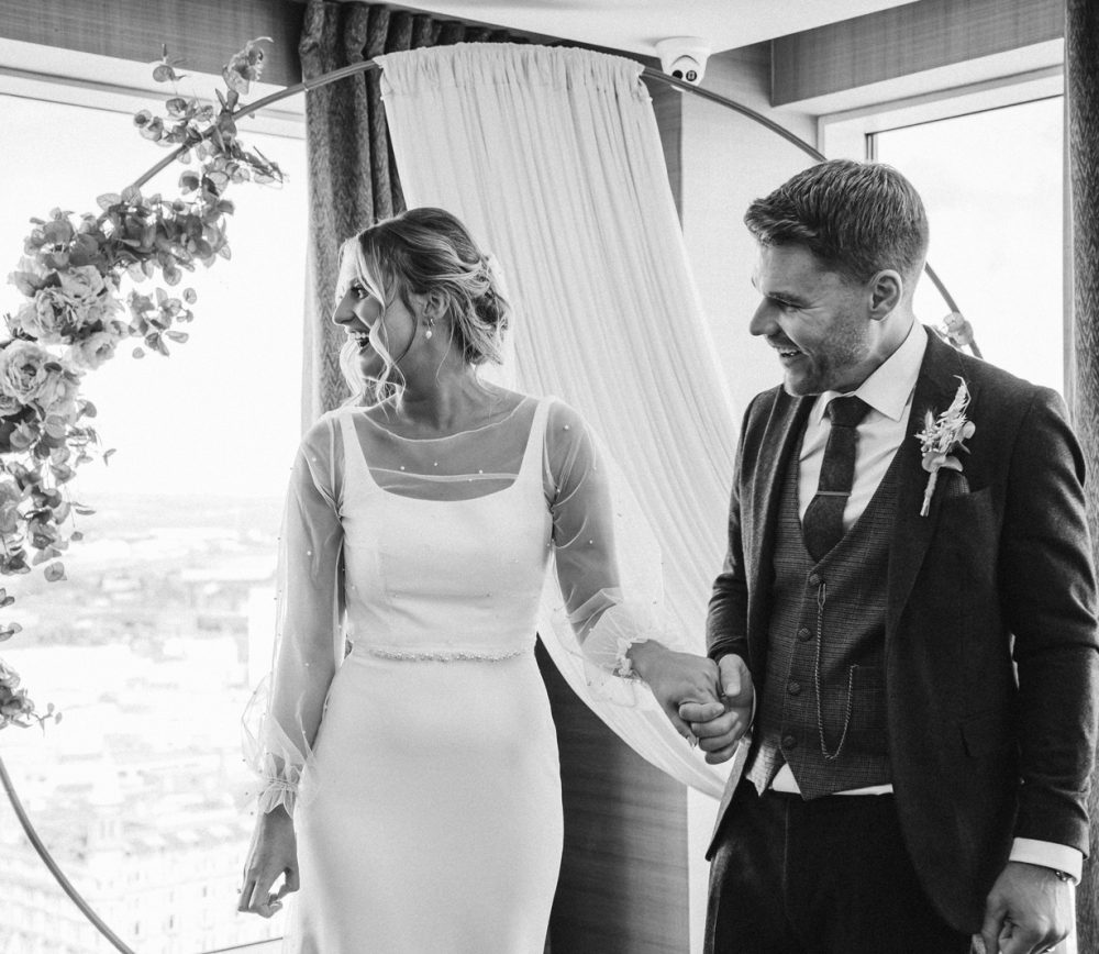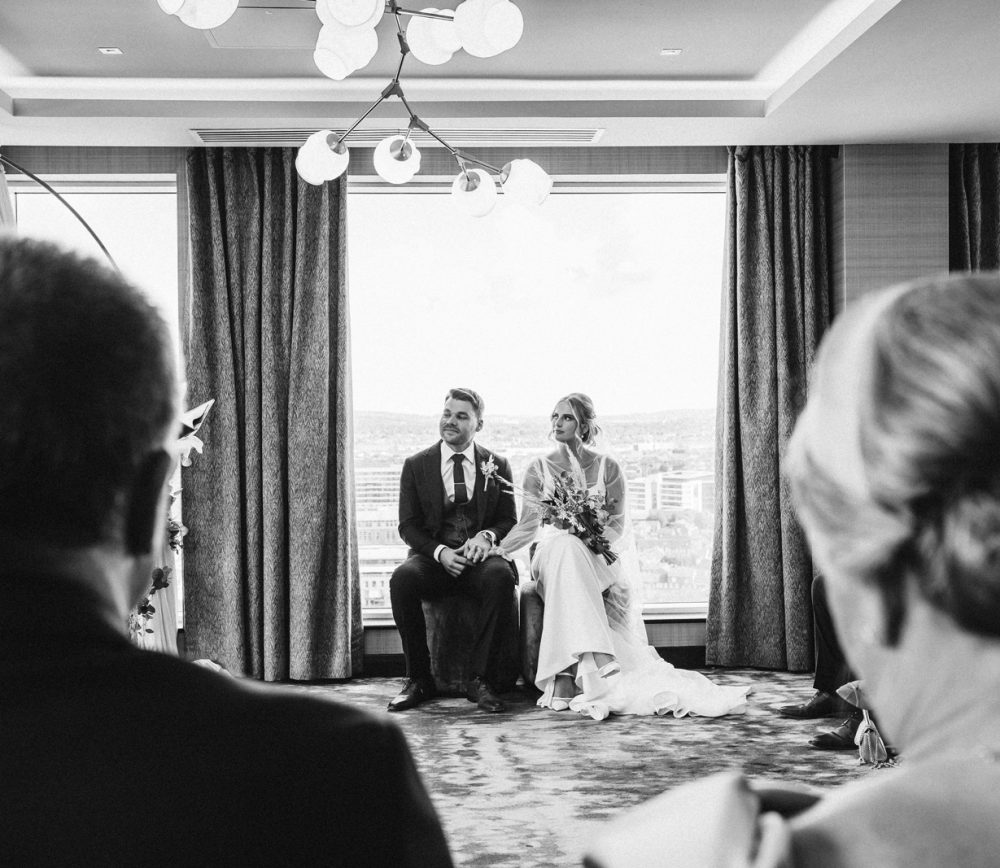 Mark and Catherine had a humanist ceremony in the observatory of the Grand Central – it has an amazing view of the stunning Belfast skyline.