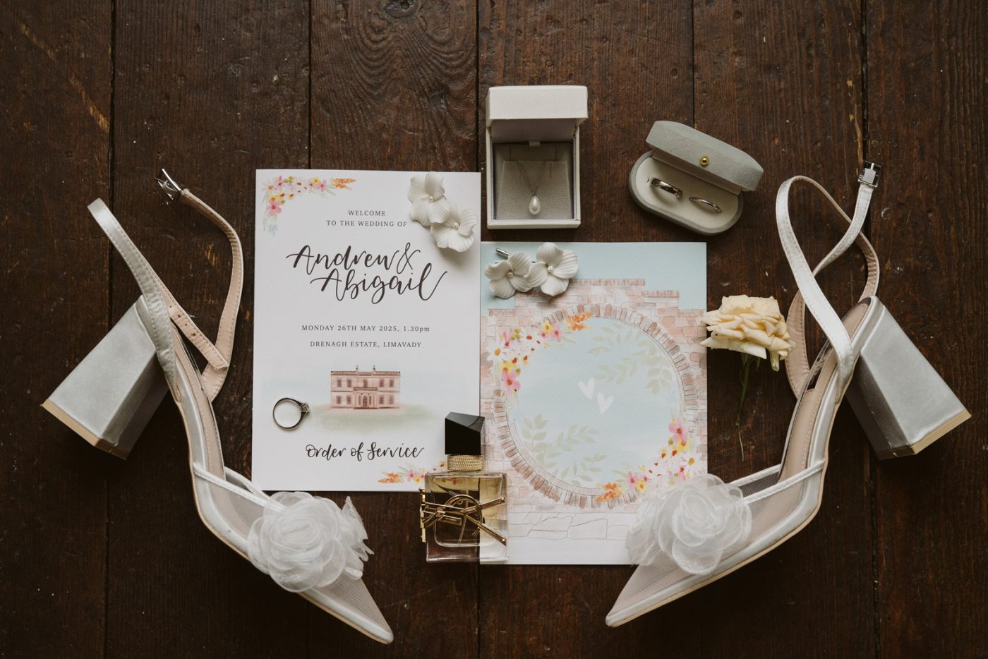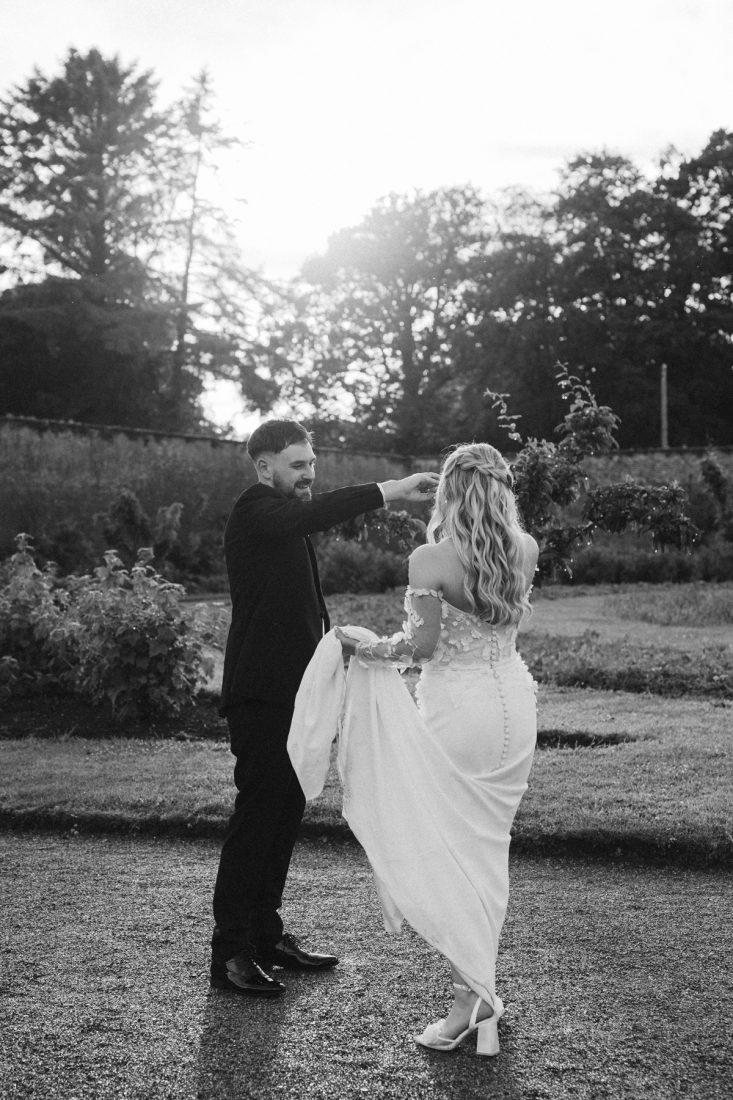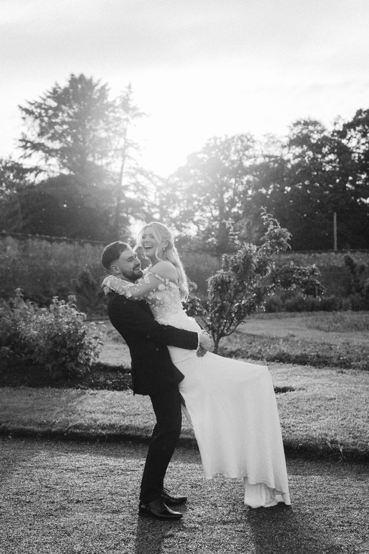 Abi and Andy had their full day in the beautiful Drenagh House, with their wedding ceremony taking in the Moon Garden. The weather wasn’t playing ball and unfortunately it was wet for most of the day, so the majority of their portraits had to be done inside / under cover. Thankfully, there was a break after dinner so we got some beautiful sunset shots in the Walled Garden. These two were the happiest couple and the weather didn’t affect them at all!