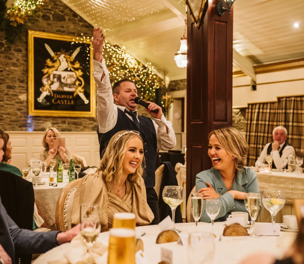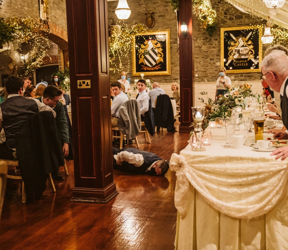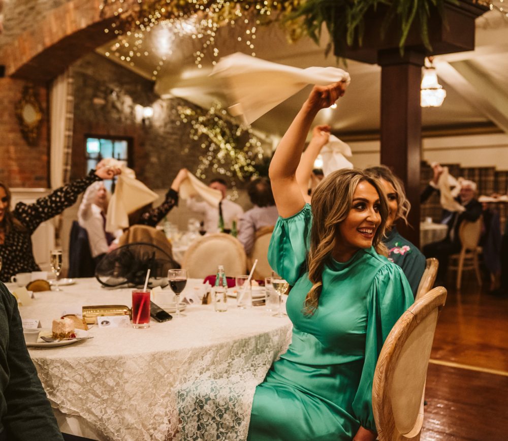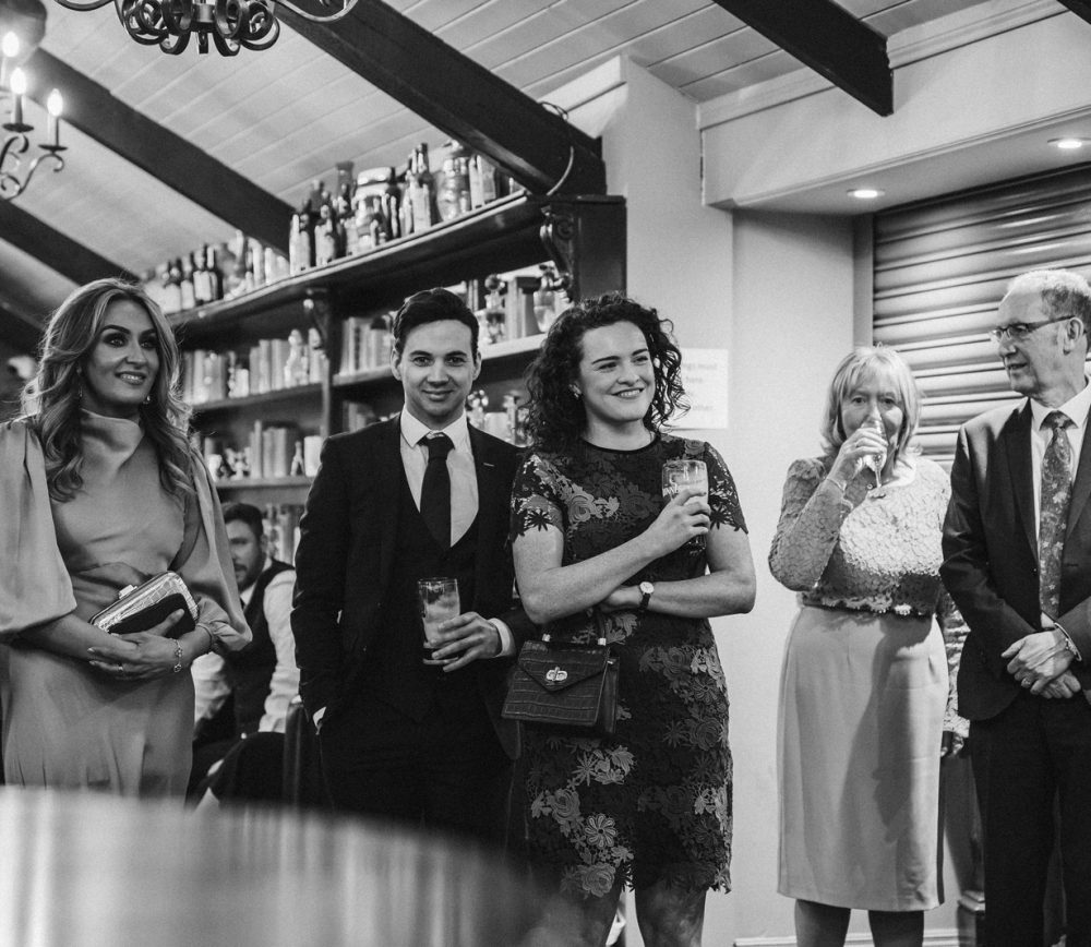 Aoibhinn and James’ wedding day was full of fun, craic and laughter. While the weather was blowing a gale outside, we stopped for a pint enroute to Dundalk to unwind after a busy morning. They had their speeches in the bar at Darver, which allowed for a much more homely atmosphere. As a surprise, Aoibhinn surprised James with a singing waiter which got everyone into the party spirit! What a beautiful wedding – I felt like part of the family!