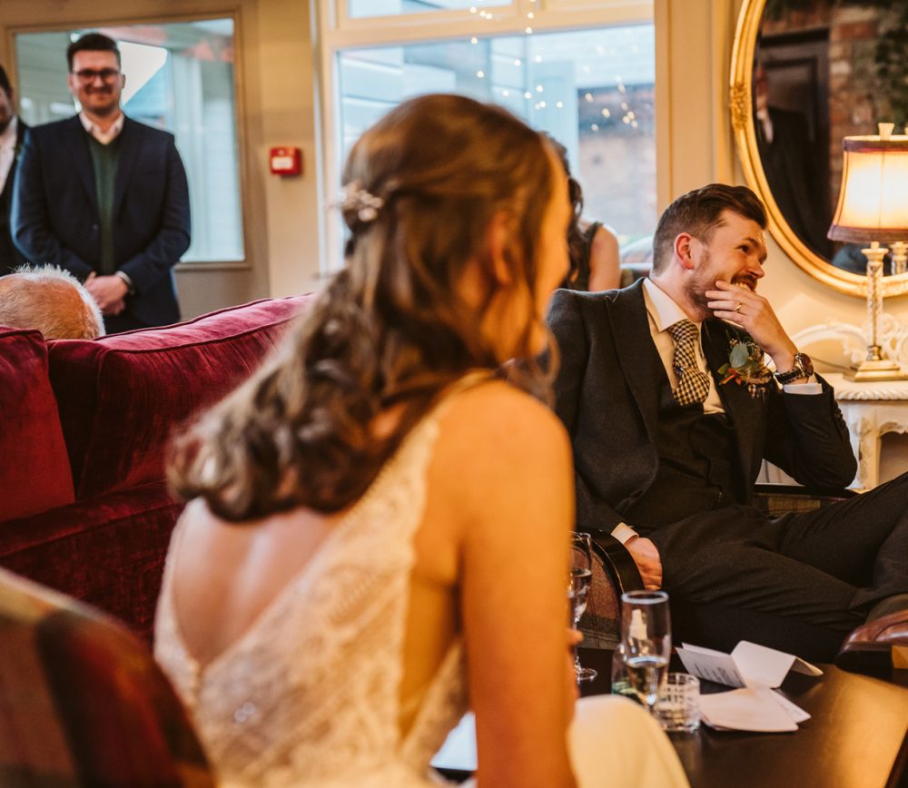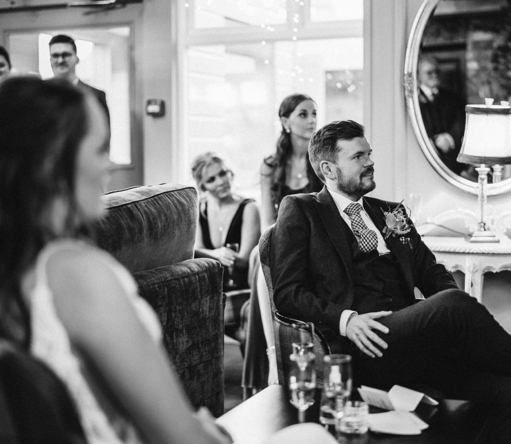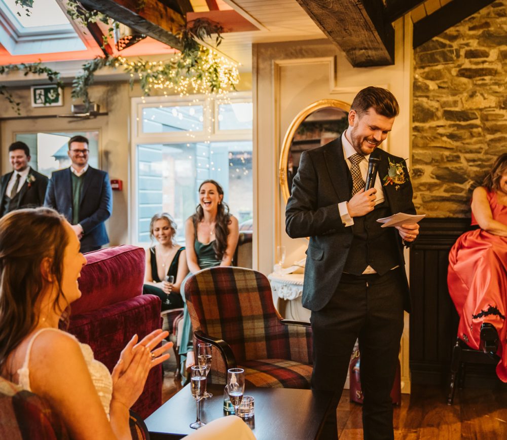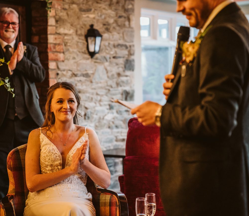 Aoibhinn and James’ wedding day was full of fun, craic and laughter. While the weather was blowing a gale outside, we stopped for a pint enroute to Dundalk to unwind after a busy morning. They had their speeches in the bar at Darver, which allowed for a much more homely atmosphere. As a surprise, Aoibhinn surprised James with a singing waiter which got everyone into the party spirit! What a beautiful wedding – I felt like part of the family!